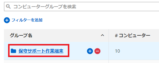 - コンピューターグループタブを選択し、一覧から対象のコンピューターグループの行を選択します。