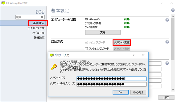 操作されるコンピューター(クライアント端末)のISL AlwaysOnの設定画面、あるいはオンラインページから変更できます。